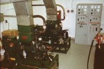 Unfortunately overloading was not the only problem. In the early days we had two 5KW (kilowatt) engines coupled to two-cylinder diesel engines. We would run one for a week, shut it down, do an oil and filter change and start it up again. If it had too many hours on it we waited for a replacement and ran the standby, praying for a ship to deliver the new engine. This worked very well. We checked them hourly for oil leaks and opened and closed windows for ventilation depending on room temeprature and weather.