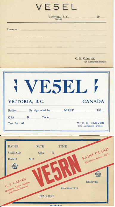 Most of the photos and information here I received from Roy Carver, son of C. E. Carver and Roy’s daughter, Sandra Vigna. Roy would have been 9 years old when he left Kains. After I wrote the paragraph above I received another email from Roy. In it he said “Clarence Edgar Carver was well qualified I’m sure for the position of a light keeper. He was one of the first Ham radio operators in Victoria; his call sign was VE5EL in Victoria, and later on Kains Island VE5RN. He had also worked on the Empress cruise ships as a radio operator going to the Orient in the 1920s. His hobby was building radios of all types.”