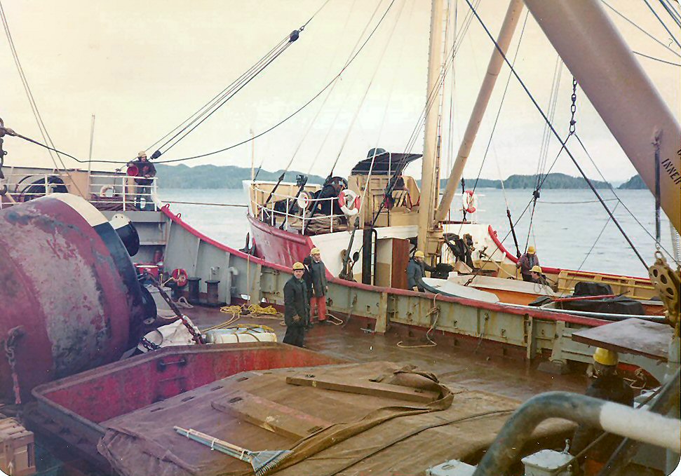 Actually that move was a very different one. After going through all of the above, we met the supply ship from Prince Rupert , the CCGS Alexander Mackenzie, in Shushartie Bay , a nice sheltered spot on the east coast of northern Vancouver Island. There the two ships tied up side by side and our supplies were transferred from one to the other while at anchor. When finished we sailed north to Prince Rupert and eventually Green island, and the Victoria ship proceeded on her re-supply trip down the inside waters. Again, all arrived safely.