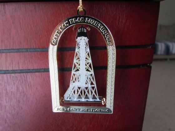 As part of a fund-raising effort in its quest to save the Cape San Blas Lighthouse from the wrath of Mother Nature, the Historical Society is selling a gorgeous brass-and-silver colored replica of the lighthouse in the form of a Christmas ornament.