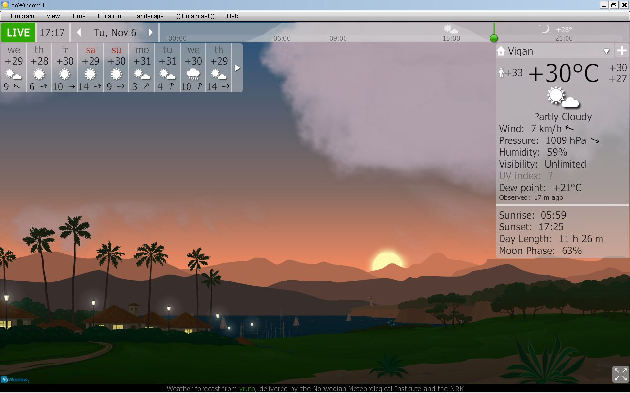 YoWindow is a weather advisory program, and a weather forecast program available for free online. It comes with a beautiful screen showing a country farmyard. I just upgraded to the paid version and it comes with a Seashore scene. Take a look at the photo above (click for larger picture) and look just below the sunset. There is a lighthouse!