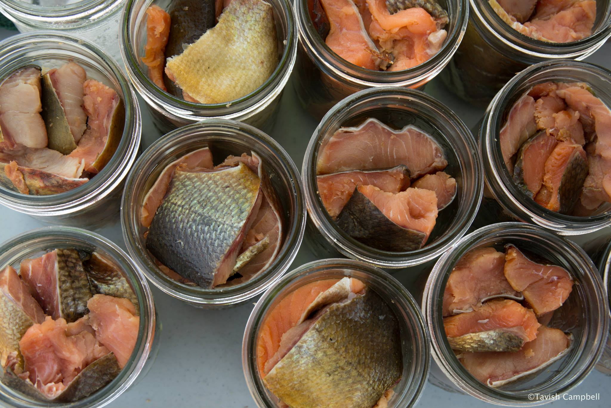 In the gallery above, a whole village is taking part, so if you are just a small family, a big fish will go a long ways. Of course you can freeze the raw leftovers (another story!) or you can preserve it in metal cans or glass bottles. In addition to the photos above from Pacific Wild, I was given permission to show the following ones on how the locals can salmon. This is my third favourite way to cook salmon, the second being smoking it (again, another story).